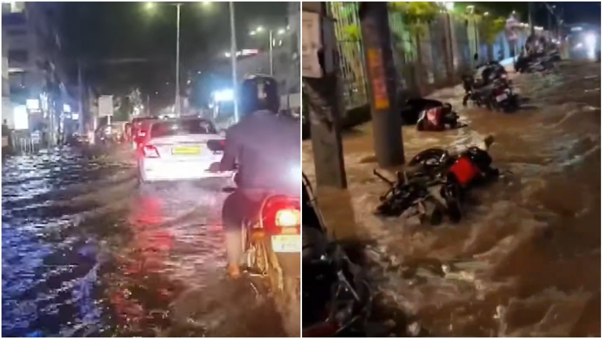 మూడు రోజుల కిందటే కుండపోత కుండపోత గుంటూరు గుంటూరు, విజయవాడల్లో ముంచెత్తిన విషయం. మళ్లీ అలాంటి పరిస్థితులే. రాత్రి రాత్రి, విజయవాడల్లో భారీ వర్షం. ఎడతెరిపి లేకుండా కురిసిన కురిసిన భారీ లోతట్టు ప్రాంతాలు జలమయం. రోడ్లపై వర్షపునీరు పోటెత్తింది .. చెరువులను చెరువులను. పలు ప్రాంతాల్లో సుమారు రెండడుగుల మేర వరదనీరు. వాహనదారులు తీవ్ర ఇబ్బందులకు. రోడ్లపై పార్క్ చేసిన ద్విచక్ర వాహనాలన్నీ నీట.
