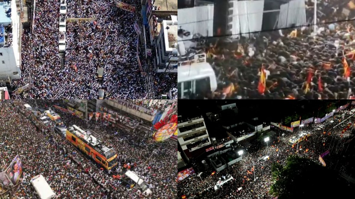మరోవైపు కరూర్ మీటింగ్ మీటింగ్ కు పోలీసులు 10 వేల మందికే పర్మిషన్. కానీ అక్కడికి 2 లక్షల మంది. అంతమందికి సరపడా సరపడా స్థలం లేక తొక్కిసలాట జరిగినట్లు మీడియా ఛానళ్లు ఛానళ్లు. అలాగే విజయ్ రావాల్సిన సమయం కంటే కంటే 5-6 గంటలు ఆలస్యంగా వచ్చినట్లు. ఎటువంటి నియంత్రణ లేకుండా లేకుండా ఒక చిన్న స్థలంలో వేలాది మంది గుమిగూడటమే తొక్కిసలాటకు తొక్కిసలాటకు తీసిందని తమిళ మీడియా.